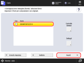 Selezionare il formato dell'originale da utilizzare come immagine form e premere [Avanti].