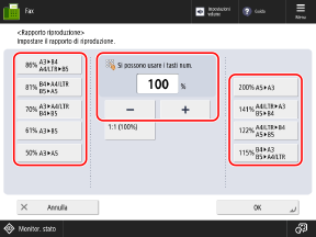 * Se si seleziona [Formato libero], l'originale può essere posizionato solo nell'alimentatore. In più, il rapporto di riproduzione è fisso a 1:1 (100%).
