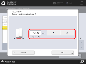 Utilizzare il pannello di controllo per regolare la posizione di piegatura della carta. Non è possibile eseguire la regolazione utilizzando la IU remota da un computer.