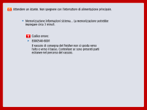 Prima di contattare un rappresentante dell'assistenza, riavviare la macchina per vedere se il messaggio di errore scompare. Se il messaggio di errore ricompare, contattare un rappresentante dell'assistenza e segnalare i sintomi.