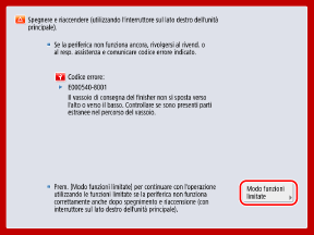 Se viene visualizzato sullo schermo [Modo funzioni limitate], è possibile premere e continuare a utilizzare la macchina prima della risoluzione dei problemi. Tuttavia, le funzioni utilizzabili sono limitate.
