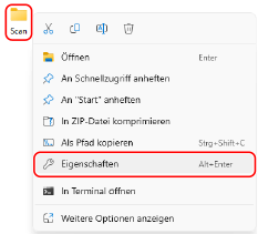 Klicken Sie mit der rechten Maustaste auf den erstellten Ordner, und klicken Sie dann auf [Eigenschaften].