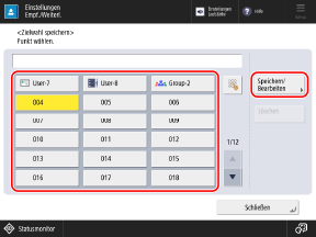 Wenn Sie Empfänger speichern, indem Sie Anwender auswählen, die derzeit in der Liste angezeigt werden, ist dieser Schritt nicht erforderlich. Gehen Sie zu Schritt 3.