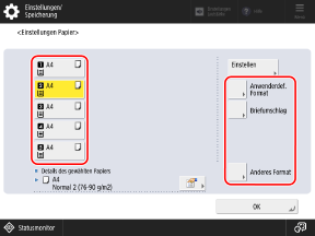 Drücken Sie [Präferenzen] [Einstellungen Papier] [Einstellungen Papier].