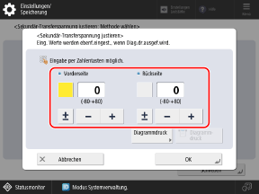 Drücken Sie die Schaltfläche [Vorderseite] oder [Rückseite], um sie auszuwählen, und geben Sie dann den Wert ein.