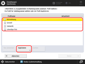 Wählen Sie ein Profil in der Liste, und drücken Sie [Duplizieren].