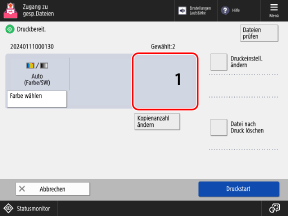 Um gemäß den in einer Datei gespeicherten Druckeinstellungen zu drucken, drücken Sie nicht [Druckeinstell. ändern]. Durch Drücken von [Druckeinstell. ändern] werden die gespeicherten Druckeinstellungen möglicherweise deaktiviert.