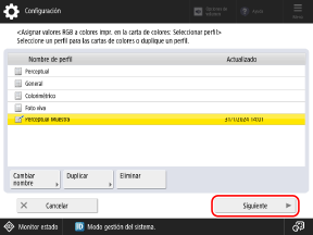 Seleccione el perfil creado y pulse [Siguiente].