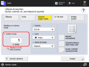 Puede incrustar números de juegos de copias (para indicar el orden de los juegos de copia). Se pueden utilizar como números de control para cada juego de copias.