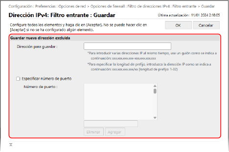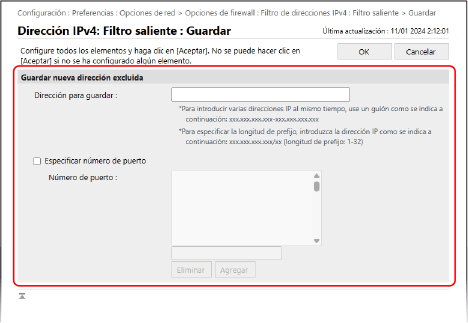 Haga clic en [Guardar nuevo] para [Direcciones excluidas].