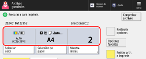 * El número de archivos seleccionados se indica encima del número de impresiones.