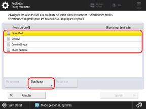 Sélectionnez un profil dans la liste et appuyez sur [Dupliquer].