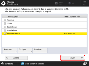 Sélectionnez le profil créé et appuyez sur [Suivant].