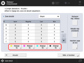 Utilisez le panneau de commande pour effectuer la correction. Vous ne pouvez pas effectuer de réglage à l’aide de l’interface utilisateur distante depuis un ordinateur.