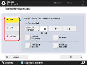 Les réglages sont appliqués et l’écran [Régler contraste caractères/fond] s’affiche à nouveau.