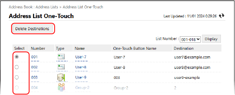 Clique em [Address List One-Touch].