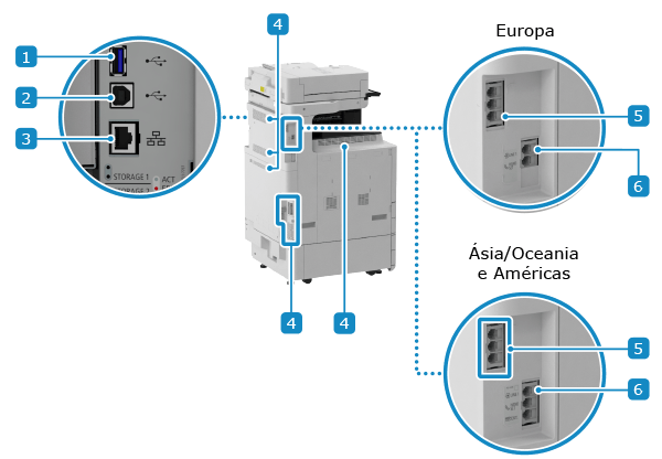 Conecte a uma linha telefônica ao instalar o Super G3 2nd Line Fax Board e/ou Super G3 3rd/4th Line Fax Board opcional.