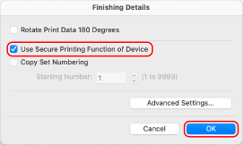 Marque a caixa de seleção [Use Secure Printing Function of Device] e clique em [OK].