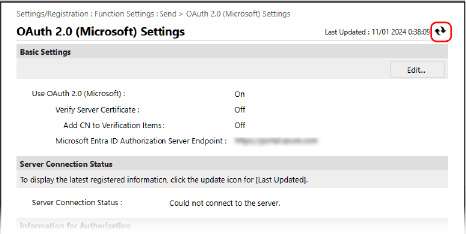 * Se você alterar as configurações de data e hora depois de definir as configurações de autenticação OAuth 2.0, reconfigure as configurações de autenticação OAuth 2.0.