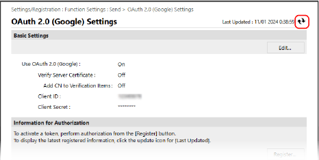 Se você alterar as configurações para parar de usar OAuth 2.0, e depois deseja usar OAuth 2.0 novamente, refaça as configurações apresentadas no procedimento “Etapa 2: Definindo as configurações de OAuth 2.0 (Google) na máquina”. Etapa 2: definir as configurações do OAuth 2.0 (Google) na máquina