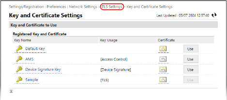 Em [Key and Certificate Settings], clique [Key and Certificate].
