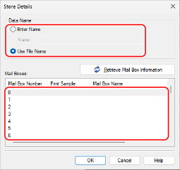 Você pode clicar em [Obter informações da caixa] para exibir os nomes de Caixa de mensagem registradas.