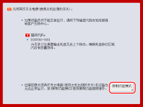 如果屏幕上显示 [限制功能模式],在故障排除前,您可以先按下并继续使用机器。但是,可用功能会受到限制。
