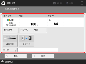 * 앞면과 동일한 설정을 사용하여 뒷면을 구성하려면 먼저 앞면을 설정한 후에 [앞면과 같음]을 선택합니다.