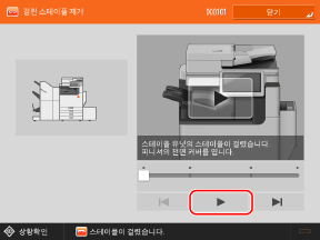 * 걸린 용지나 스테이플을 제거하기 전까지 이 화면이 반복해서 표시됩니다. [닫기]를 눌러 화면을 잠시 닫고 다른 작업이나 설정을 수행할 수 있습니다.