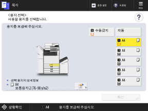 표시된 용지를 적재한 급지 위치를 지정하고 [확인]을 누릅니다.