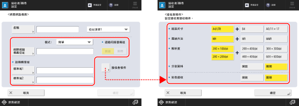 根據目的地機器規格設定目的地條件。如果您設定目的地機器不支援的條件,可能會發生錯誤。