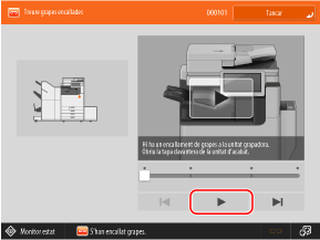 Si es produeix un encallament de grapes, apareixeran al tauler de control un missatge, la ubicació de l'encallament i el procediment que cal seguir per solucionar-ho. Premeu [