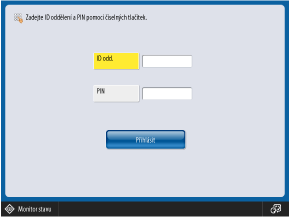 Když je aktivní správa ID oddělení, při přihlašování pomocí ovládacího panelu nebo Remote UI (Vzdálené UR) musíte zadat ID oddělení a PIN.