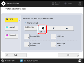 *Orámovaný vzorek v ukázkovém tisku ukazuje výsledek tisku s aktuálně nastavenou hodnotou kontrastu.