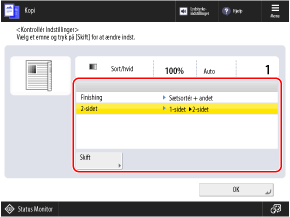 Kopieringsskærmen vises, når du trykker på [Kopi] på skærmbilledet [Hjem] på betjeningspanelet.