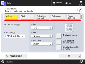 Valitse kopiointinäytössä [Lisäasetukset] [Turvavesileima]. Kopionäyttö
