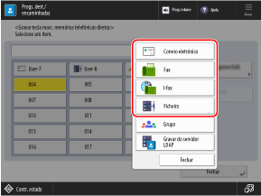 Utilize os seguintes métodos para registar endereços de correio eletrónico, locais de armazenamento de ficheiros e números de fax:
