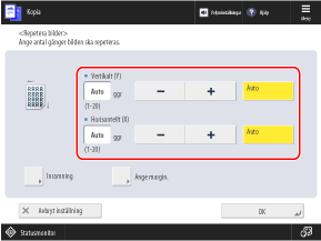 När det här alternativet är inställt till [Auto] upprepas det kopierade originalet automatiskt det maximala antalet gånger som det får plats på sidan.