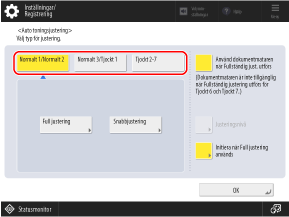4. När du väljer [Enkel] tillämpas kalibrering på alla papperstyper och noggrannheten för kalibrering minskar, men tiden det tar för kalibrering blir kortare. Behörighet som administratör eller enhetsadministratör krävs för att ställa in dessa inställningar.