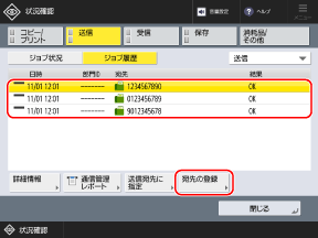 ※ワンタッチボタンに登録した宛先は、アドレス帳(ワンタッチ宛先表)にも登録/表示され、宛先指定時にアドレス帳からも指定することができます。