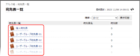 [宛先表一覧]画面が表示されます。