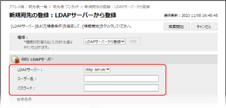 LDAPサーバーのユーザー情報を利用して宛先を登録する場合