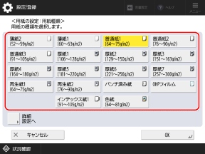 [詳細設定へ]を押し、表示された一覧から用紙種類を選択します。