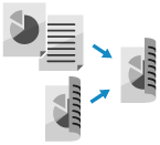両面原稿のオモテ面とウラ面を、1 枚の用紙に両面コピーします。