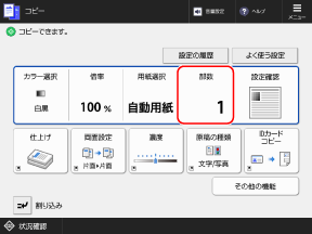 [設定の履歴]を押すと、過去にコピーしたときの設定を呼び出すことができます。