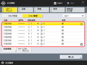※履歴を表示しないように設定されている場合は、コピー状況のみ確認できます。[ジョブ履歴の表示]