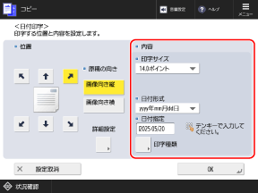 日付(年月日)を付けてコピーします。印字する日付は任意に指定できます。