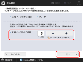 ※テストページのプリントに用紙を最大 10 枚使用します。