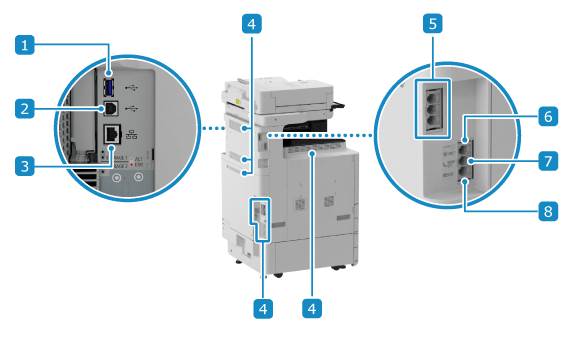 オプションのG3回線増設キット(2回線)/G3回線増設キット(3・4回線)装着時に、各電話回線に接続します。