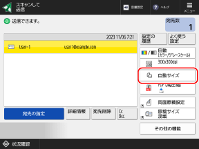 スキャンの画面で、原稿サイズの設定ボタンを押す スキャンの画面